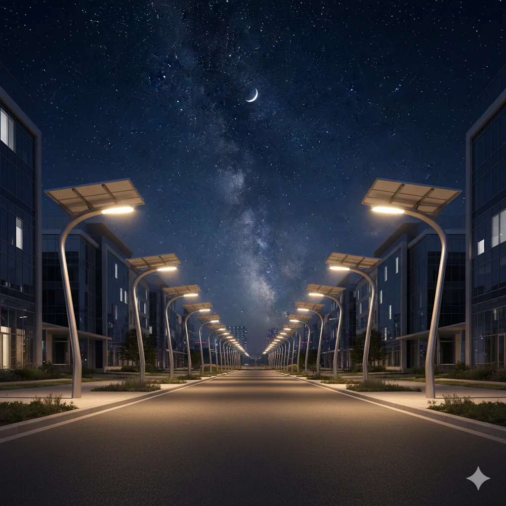 Aarkonic solar street lights are a sustainable, efficient, and cost-effective solution for outdoor lighting. Powered by solar energy, these lights offer significant energy savings, require little maintenance, and are designed to withstand harsh weather conditions, making them an eco-friendly and long-lasting choice.