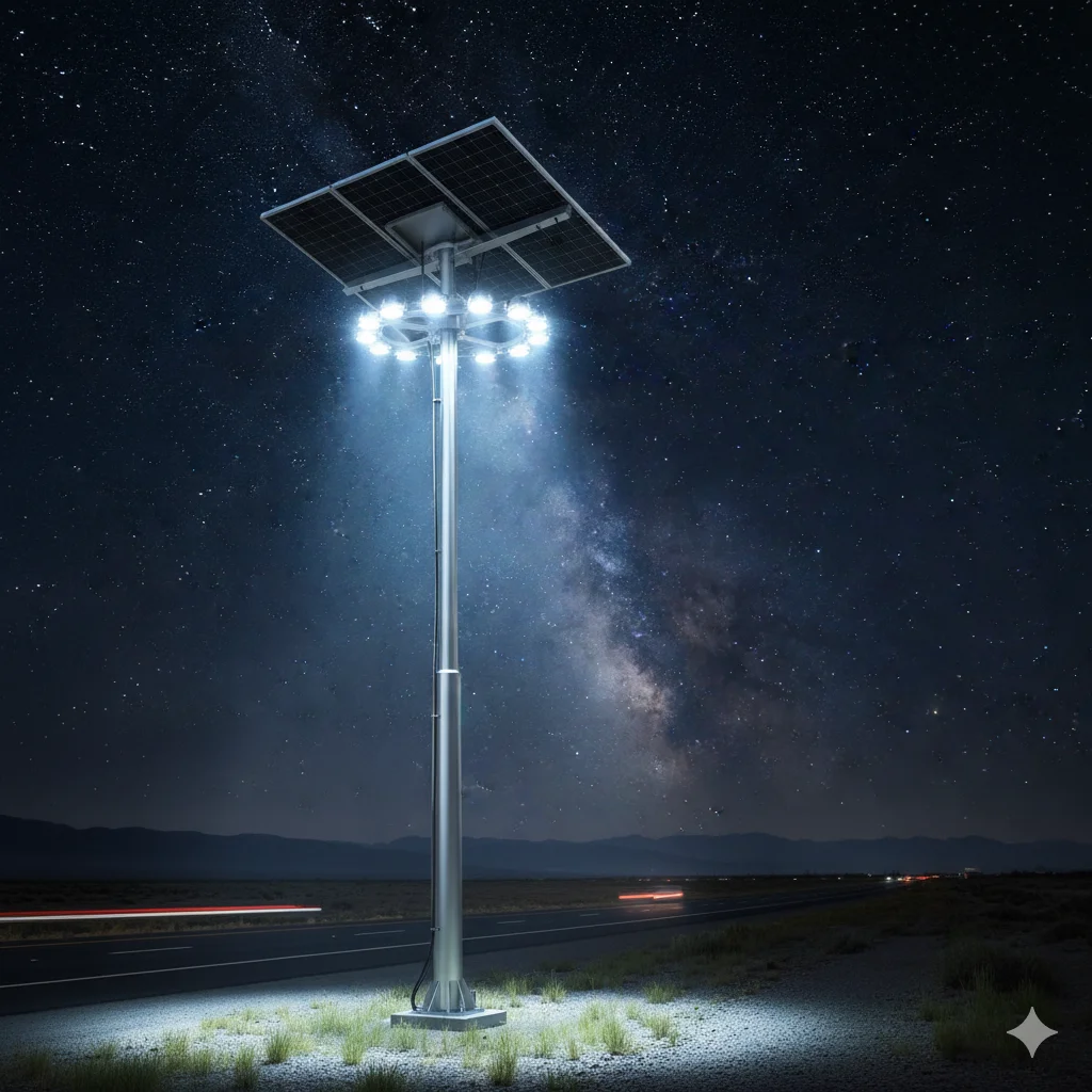 Aarkonic’s solar street lights offer an advanced and sustainable solution for both public and private lighting needs. These innovative lighting systems are powered by solar energy, harnessing the sun’s natural power to provide consistent illumination throughout the night. By using solar panels to charge during the day, they operate completely off-grid, eliminating the need for traditional power sources. This not only significantly reduces electricity costs but also decreases the strain on the local power grid.